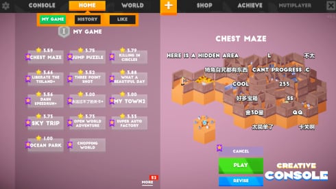 Creative Console дает динамичный опыт, основанный на дизайне и экспериментах по инициативе юзера. Эта платформа сочетает в себе элементы платформеров, ролевых игр и песочниц, позволяя геймерам сделать каждый аспект своего геймплея. В основе лежат "Творческие карты", которые служат инструментами для изменения механики, окружения и целей. С помощью них игроманы могут изменять углы камеры, расставлять объекты, вызывать противников или даже затевать спонтанный футбольный матч.